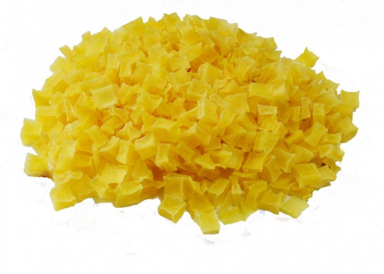 Стоит отметить, что по консистенции сушеный картофель, изготовленный в форме кубиков, отличается твердостью, в то время как пластинки и столбики – довольно хрупкие. Кроме того, цвет сушеного картофеля может зависеть от сорта корнеплодов, а также температурных режимов сушки. Как правило, окраска сушеного картофеля может быть от белого до желтого оттенков.